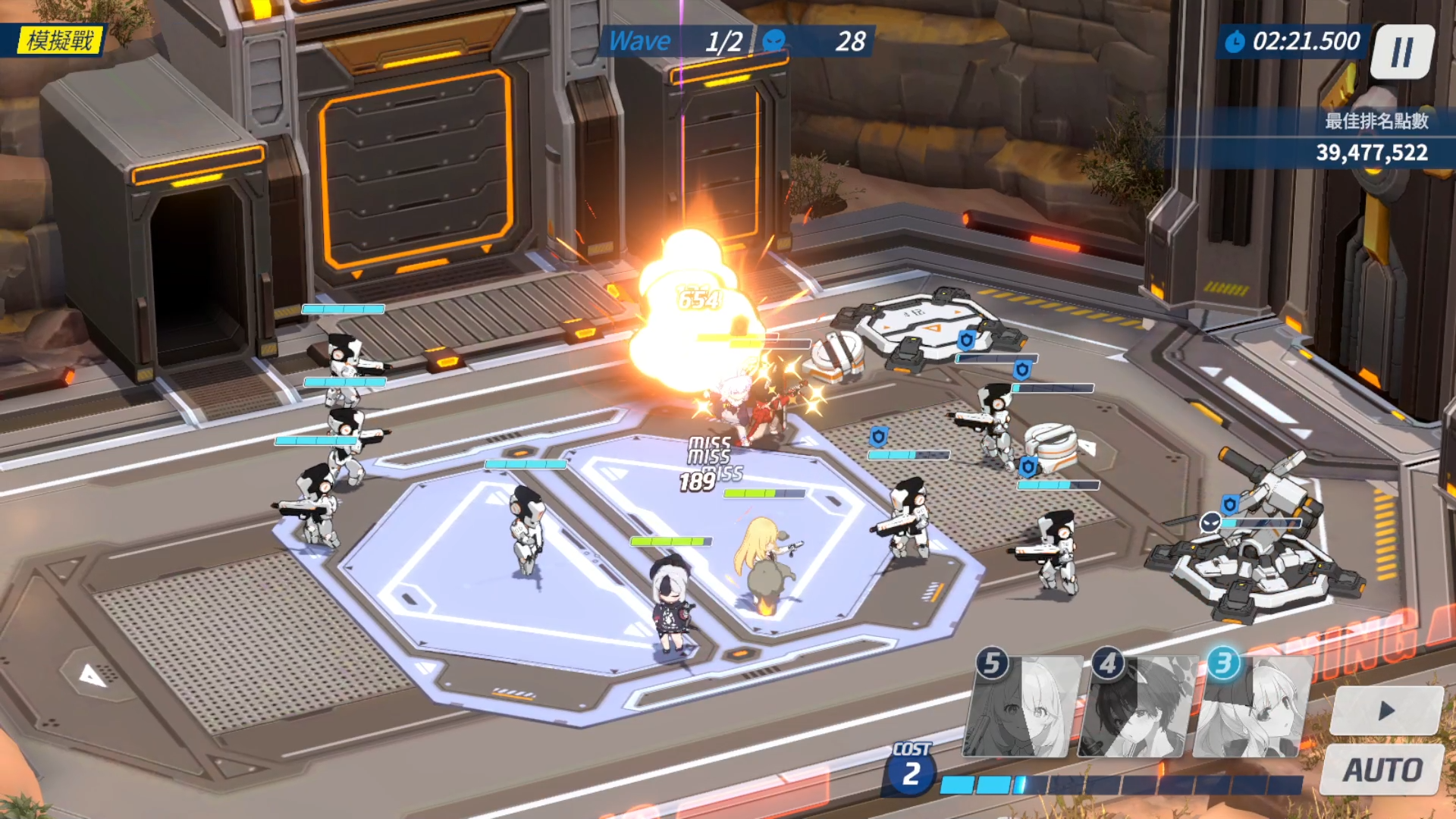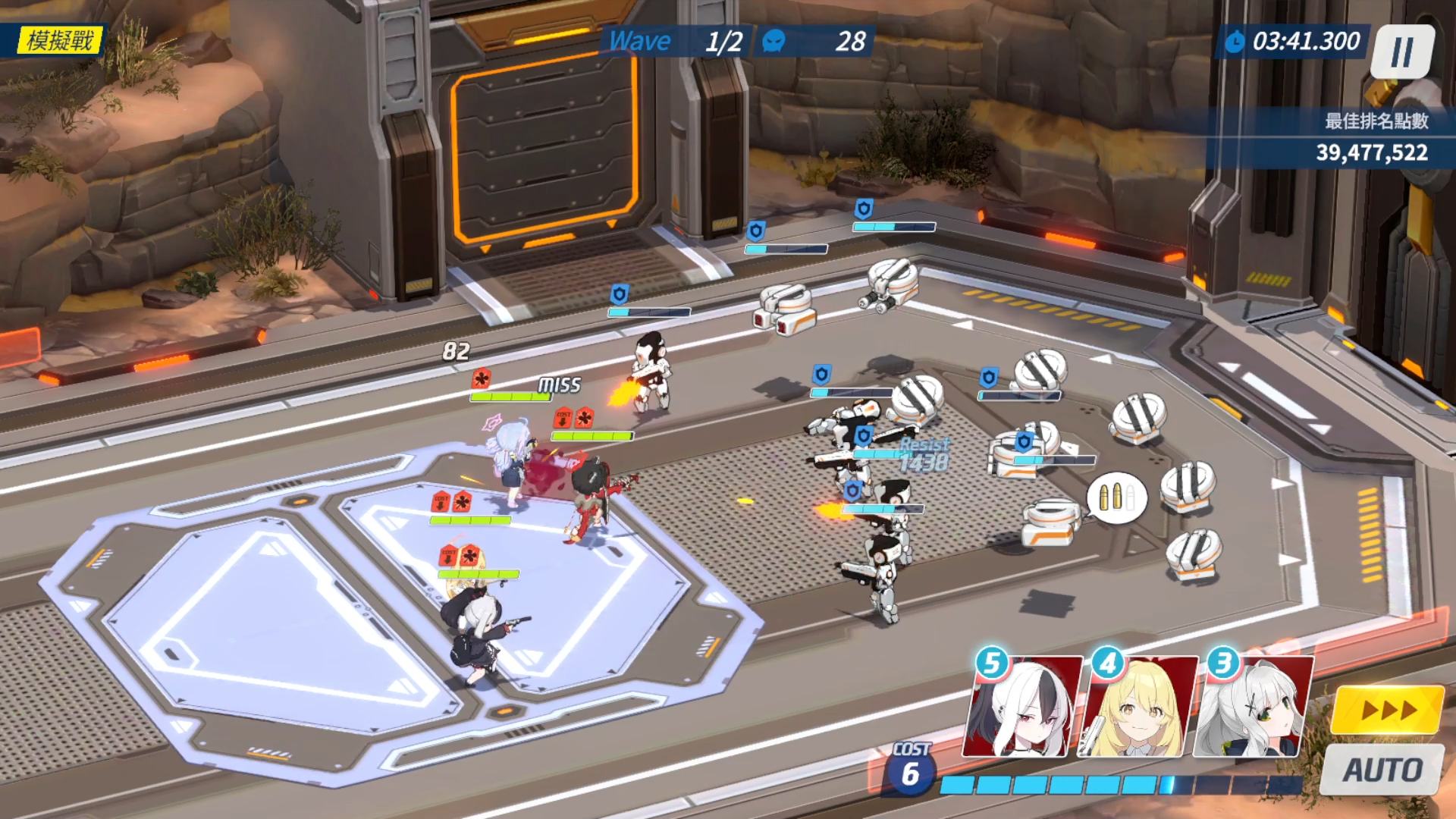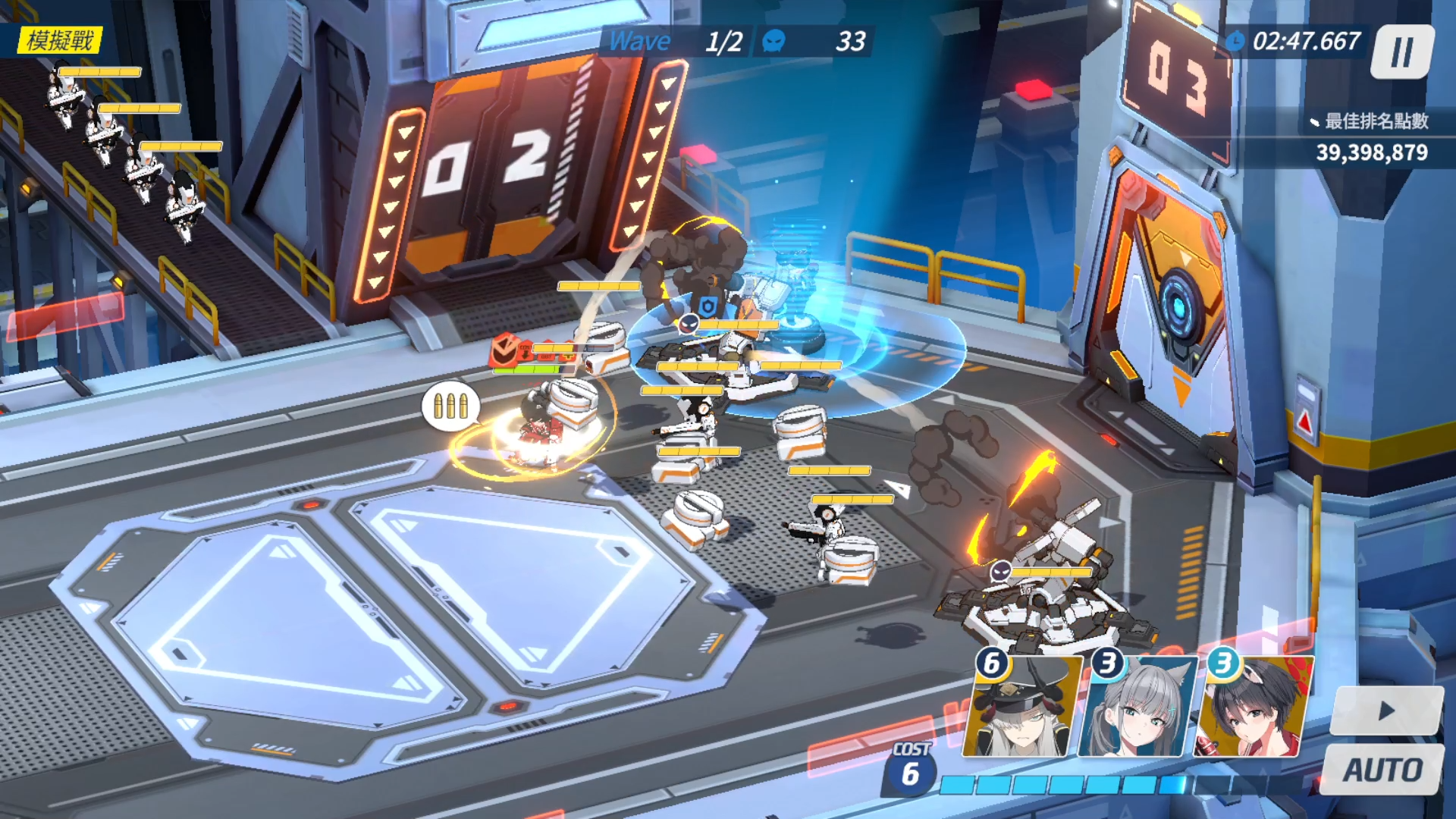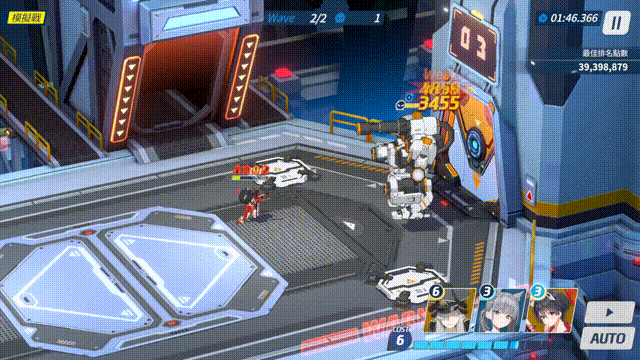 其中重点威胁是防御炮塔的普攻和自动机/无人机的自爆。防御炮塔锁定最远目标的机制使其成为主要威胁我方后排输出的单位,并且范围攻击很容易同时波及多名我方,高难度下我方使用红黄甲后排时通常需优先处理炮塔(送人轴例外)。而自动机和无人机的自爆会造成高额的不可闪避伤害,对坦位和靠近坦位的我方单位是一个严重的威胁,我方应尽量在自动机/无人机入场的20秒内将其击败(由于自爆而死的机械士兵也会累积无力量表,因此亦可利用此机制自动开壳,前提是预先卡好无力量表)。