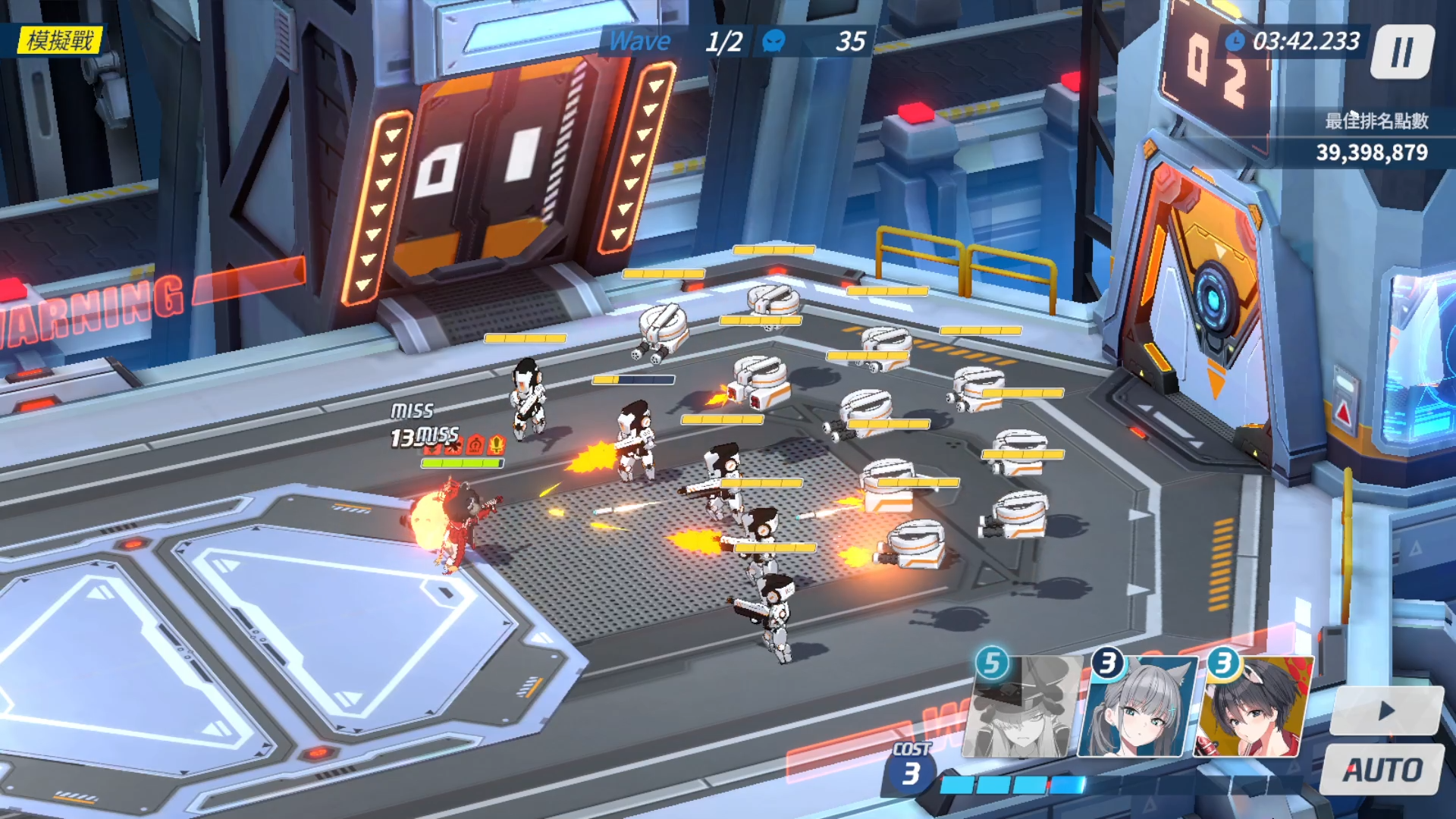③、虽然机械士兵单兵战斗力普通,但其数量众多仍然会造成明显的生存压力。通常编队需要有一名坦位抗压,坦位的生存压力受到清杂效率的影响,清杂效率越高则坦位压力越小,反之则压力越大,因此通常清杂能力强坦位的选择就可以更宽松。坦位选用闪避坦和防御坦均可,闪坦生存能力相对更佳,不过生存能力只要够用就行。高难度下红甲坦位仅限短轴特殊打法选用,长轴优先非红甲坦位。此外在二阶段战斗中使用清杂技能时可根据情况留少量机械士兵,少量的机械士兵不会有太大威胁,而我方可以在此期间回复费用以更好应对后续的冲击。