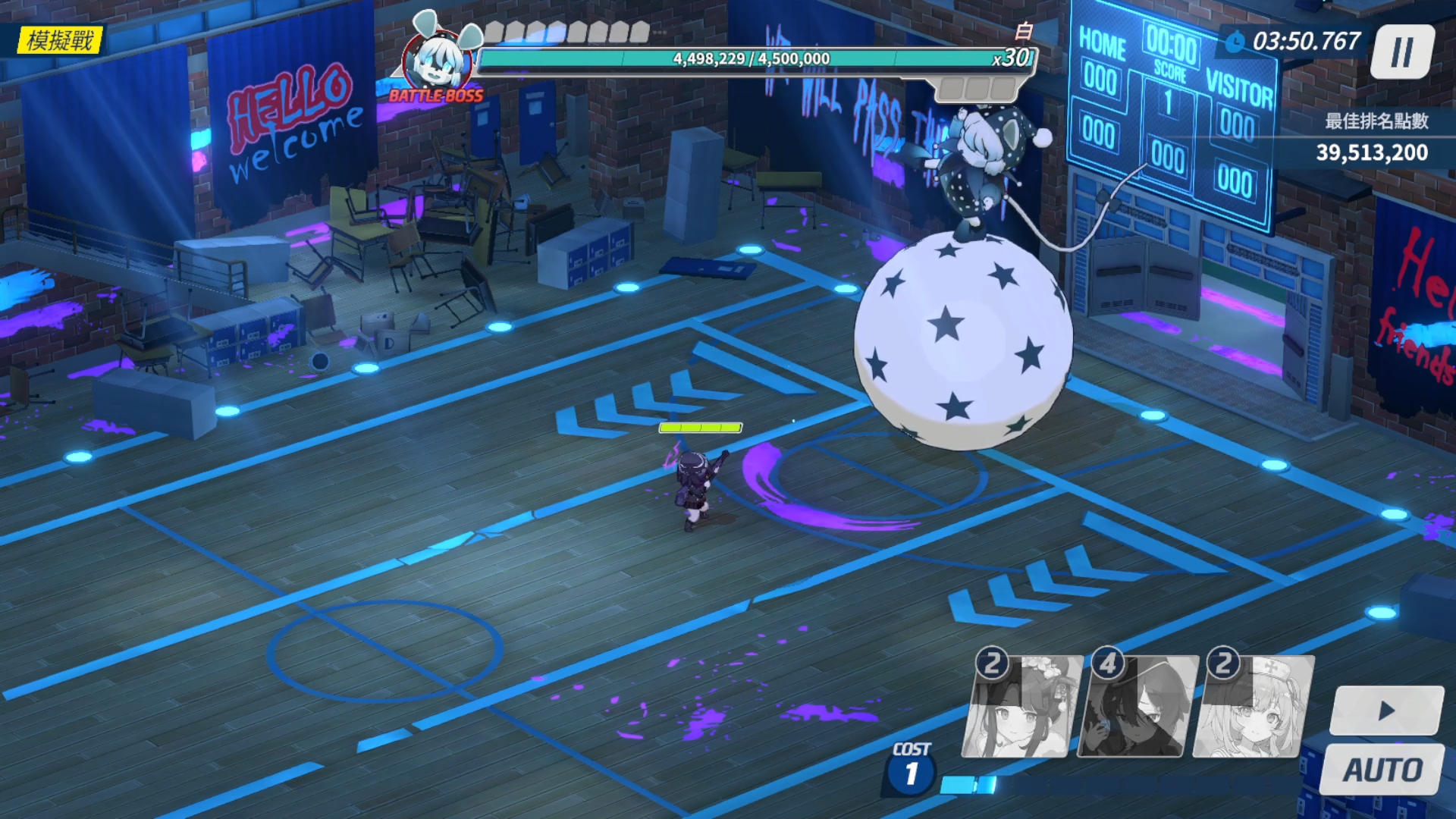通常P1长轴必须配备掩体角,而短轴则可以考虑用位移角躲避。高难度滚球对学生的伤害很高而且对减速目标几乎是直接秒杀,但被弹回后就不会继续伤害后方的目标,因此使用掩体角不仅对输出有利而且也可以确保路径上学生的安全。注意在高难度掩体需要能同时承受两个球的伤害才能将两个球全部弹回,如果只足够弹回一个球那么有一个球不会被弹回,此外TOR难度白对掩体的伤害比INS难度更低一些。