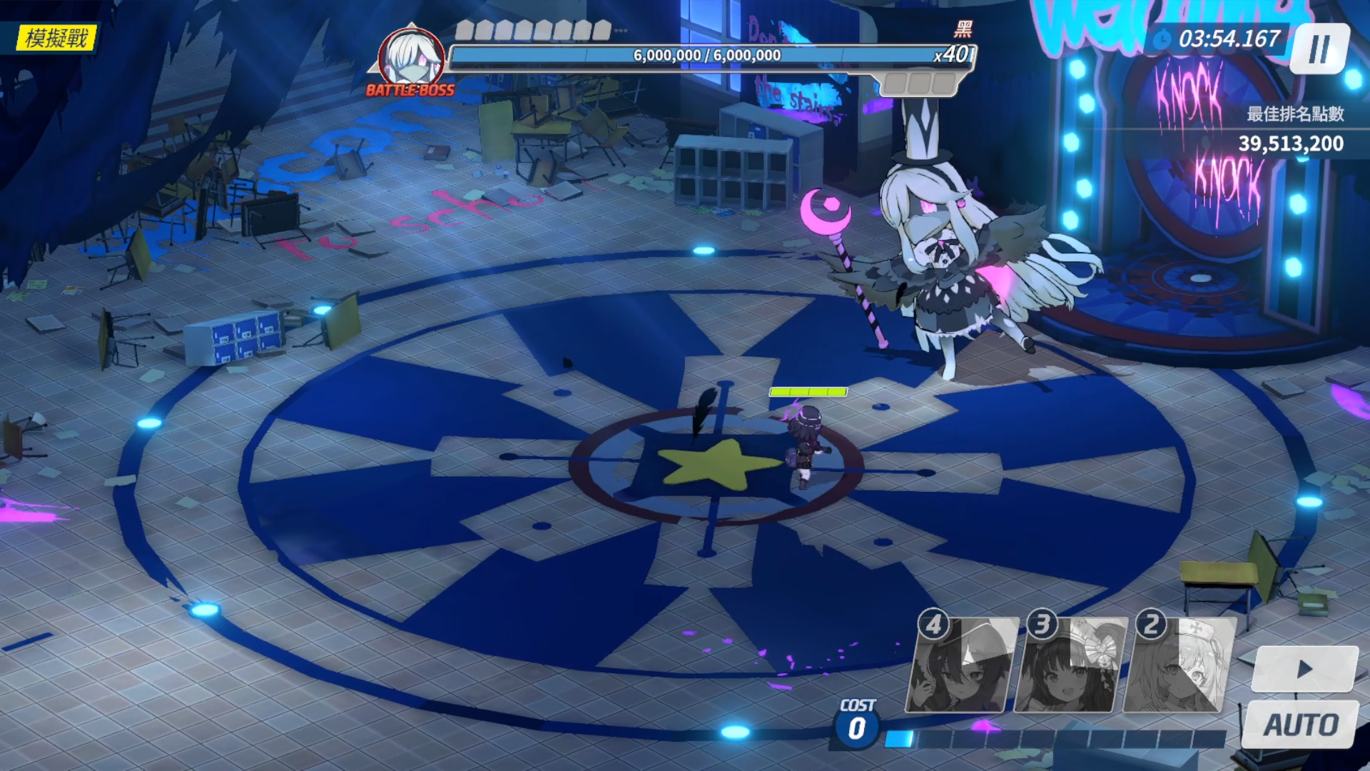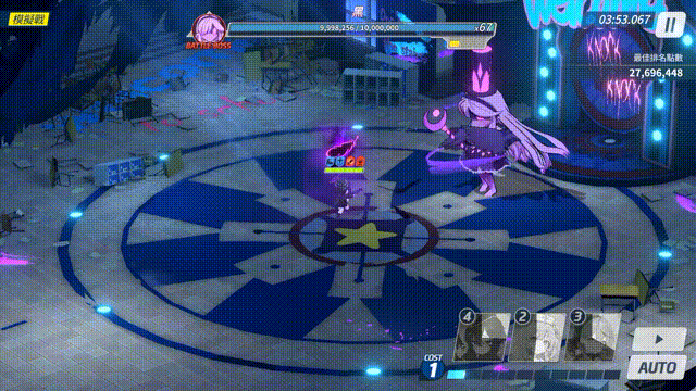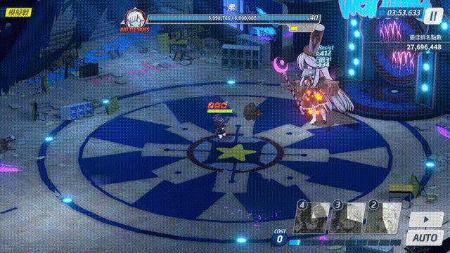 ①、此战斗的核心机制在于BOSS的技能以非指定目标的延时打击为主,白的炸弹与黑的游乐设施自登场后有较长的时间间隔才会对目标区域造成伤害,因此可以提前做好准备。不过由于该BOSS不同难度的技能差距较明显,对策方案往往也随难度有所变化。