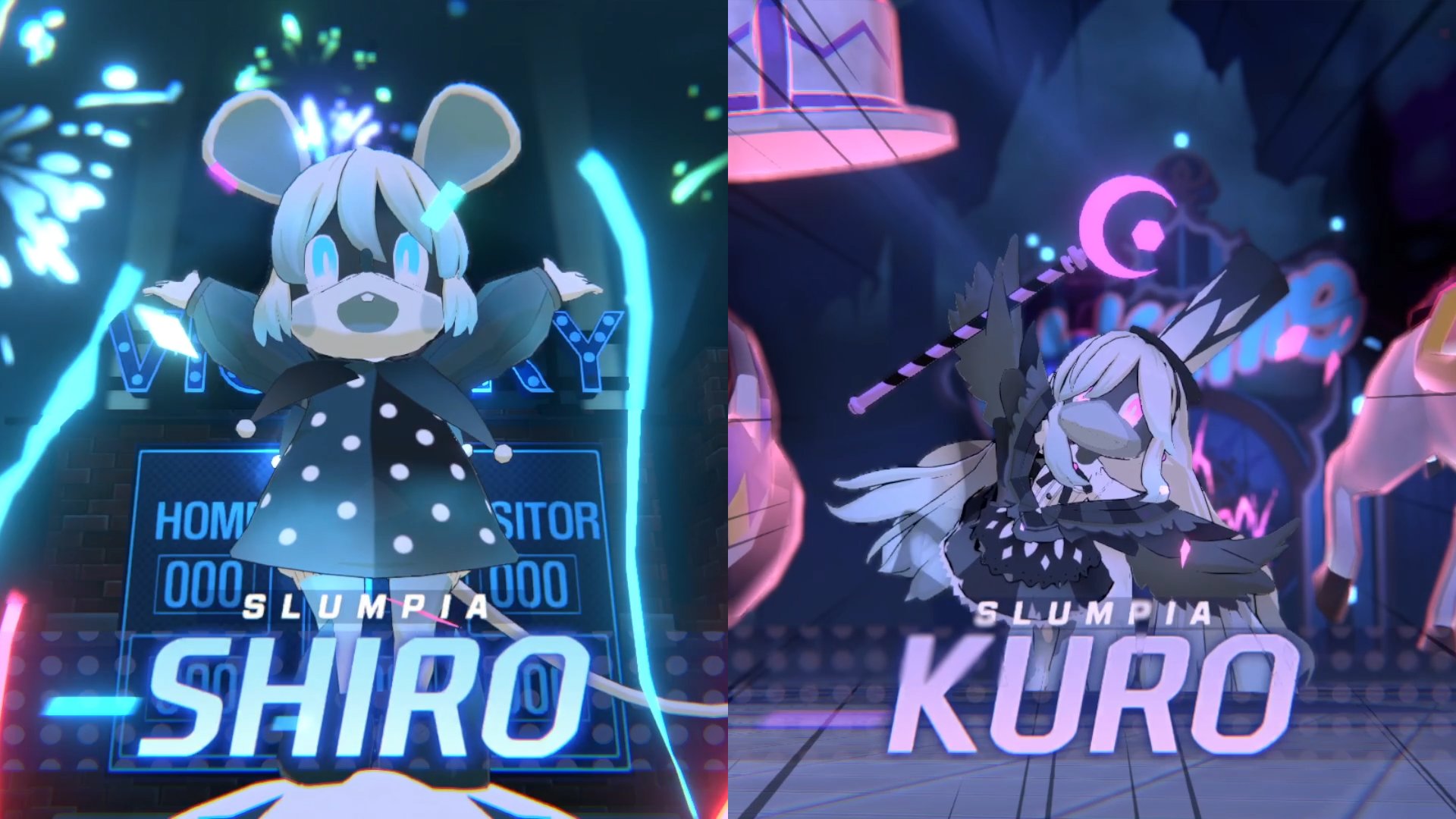 背景故事:近期收到报告,在很久以前因财政问题而倒闭的游乐园“史林皮亚”里发生了不明的诡异现象。据传闻所说,本已停止运行的游乐园人偶和各种游乐设施会在午夜时再次开始活动并袭击人们。游乐园人偶——白&黑,二者再次开始活动的理由尚不知晓,不过能够看出它们似乎想要再现过去游乐园辉煌时期的盛装游行。