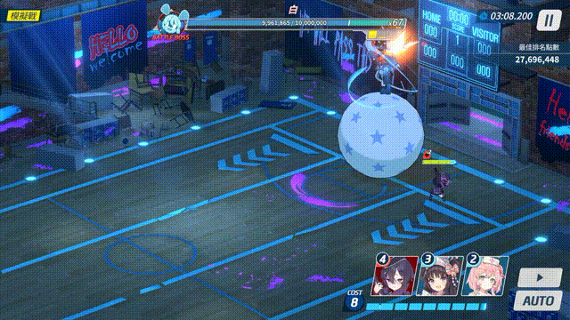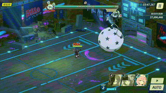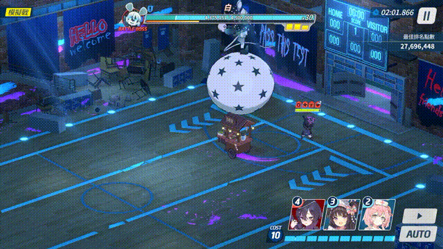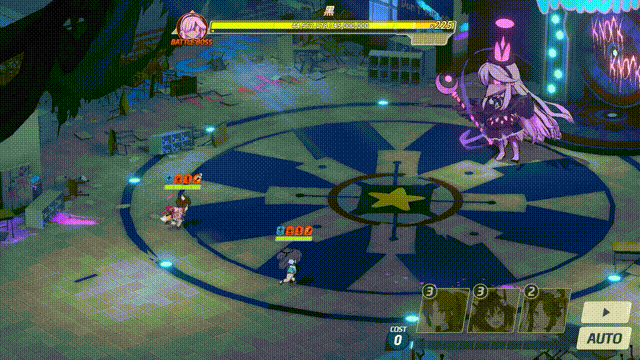 EX及以下难度 INS难度 TOR难度 在场上召唤若干游乐设施,根据ATG阶段不同,召唤的设施数量、设施伤害会发生变化: 每次召唤2/3/4个游乐设施,游乐设施登场后出现红色区域警示,7秒后设施启动并沿警示区域进行冲撞; 游乐设施会对路径上第一个接触的单位或掩体造成攻击力400%/500%/700%的伤害并击退; 游乐设施击中黑自身时额外填充无力量表 (设施在启动前也会对接触到的目标造成伤害并击退,且不影响后续冲撞) | |||