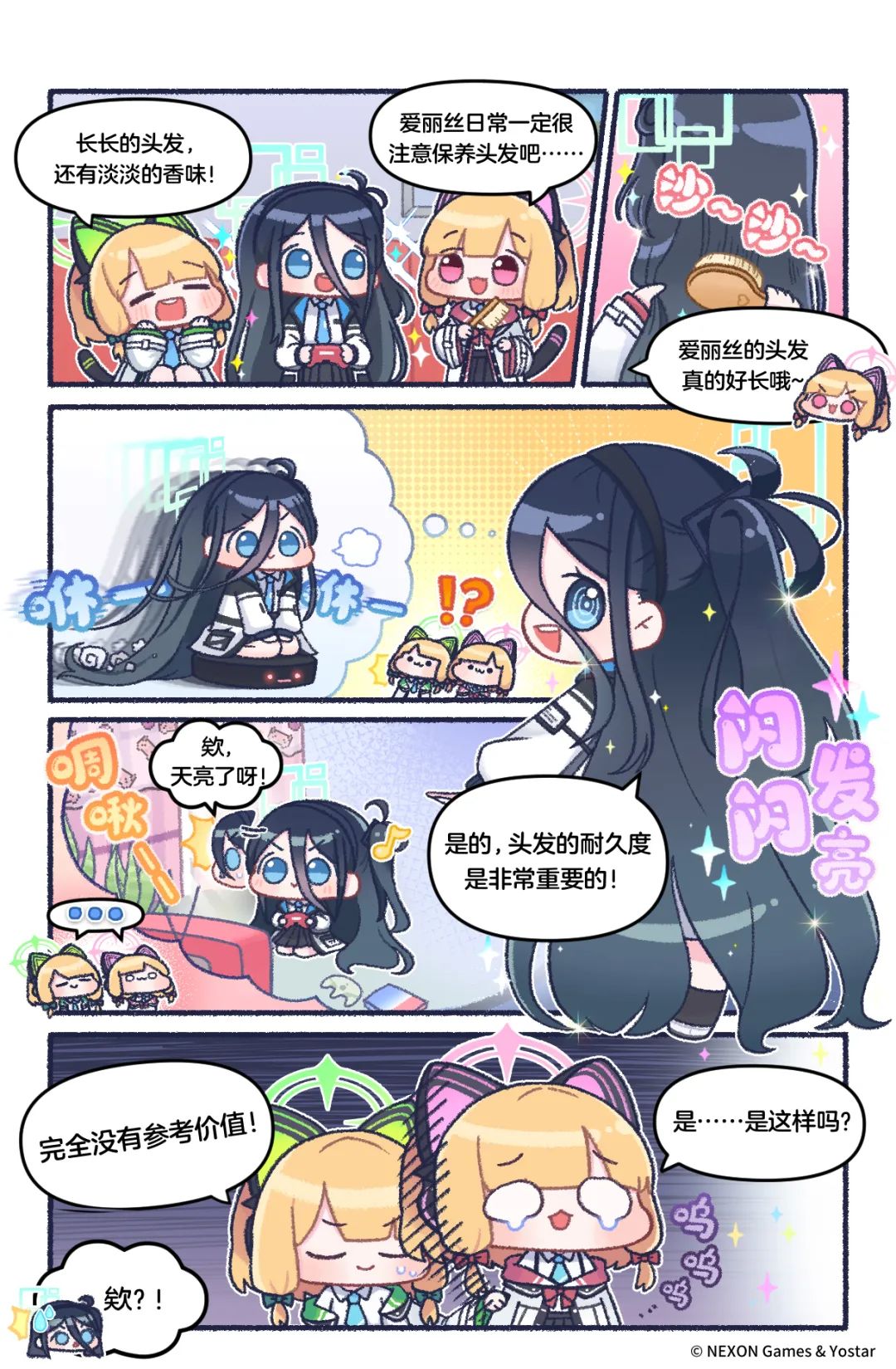第四话:爱丽丝的长头发邦吧咔邦!游戏开发部的新成员:爱丽丝登场! 拥有一头柔顺长发的爱丽丝,吸引了小桃和小绿的好奇! 爱丽丝究竟是如何维持头发的“耐久度”的呢? 啊,请老师不要模仿熬夜打游戏的行为喔!第五话 > 登场角色 桃井 绿 爱丽丝