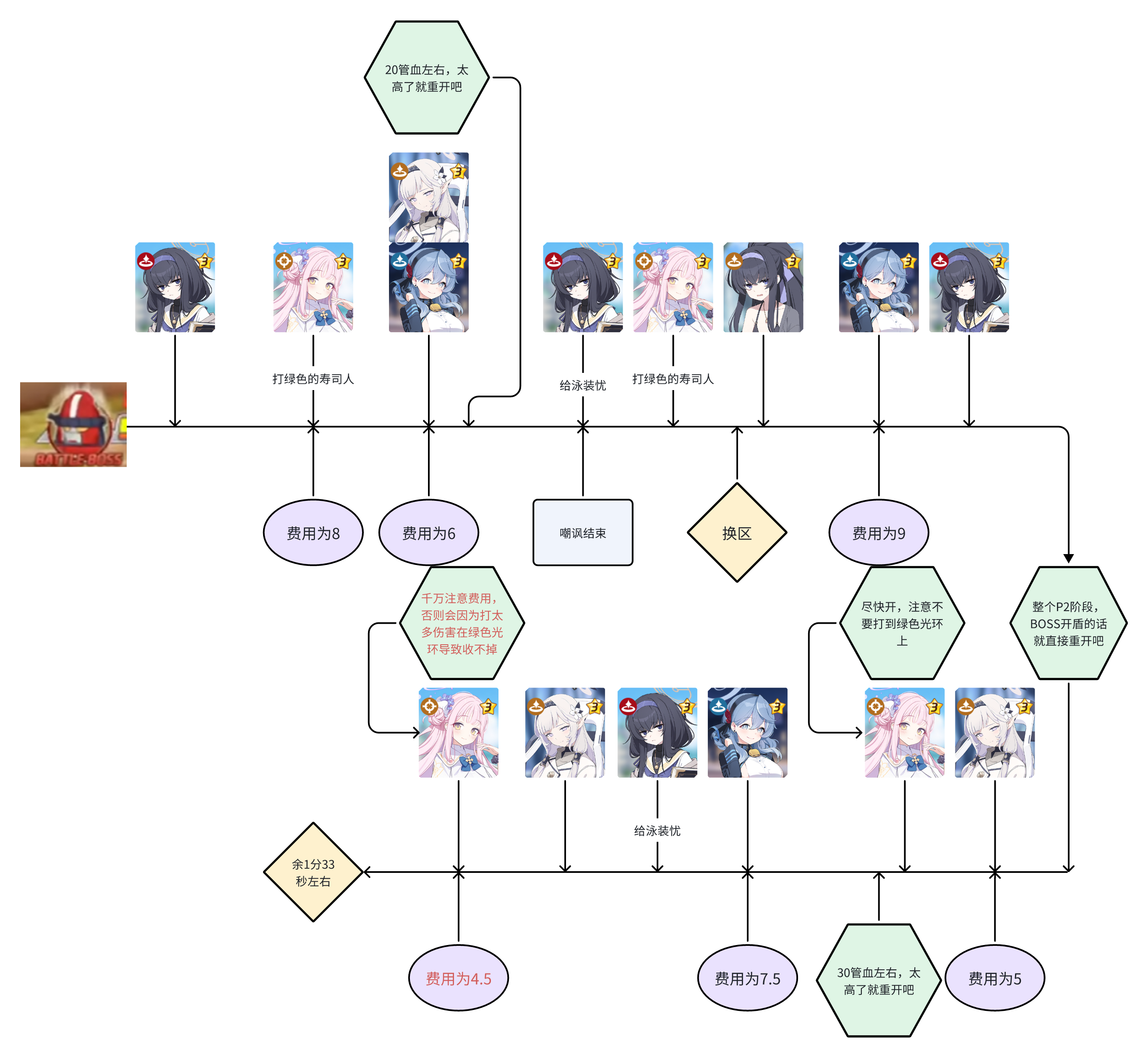 - 寿司人还是挺难凹的,尤其是P2,有太多变数(BOSS开盾,BOSS光环不对等)。因此假如跟着作业打发现伤害不对也不要意外,重来就好