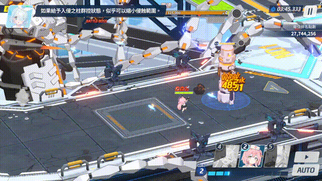 [INS+]第一段伤害的范围与EX及以下难度一致 | 常规AOE技能,范围有限且倍率不高; 不过大范围的击退可能导致乱位 | 预览1 预览2 | |
