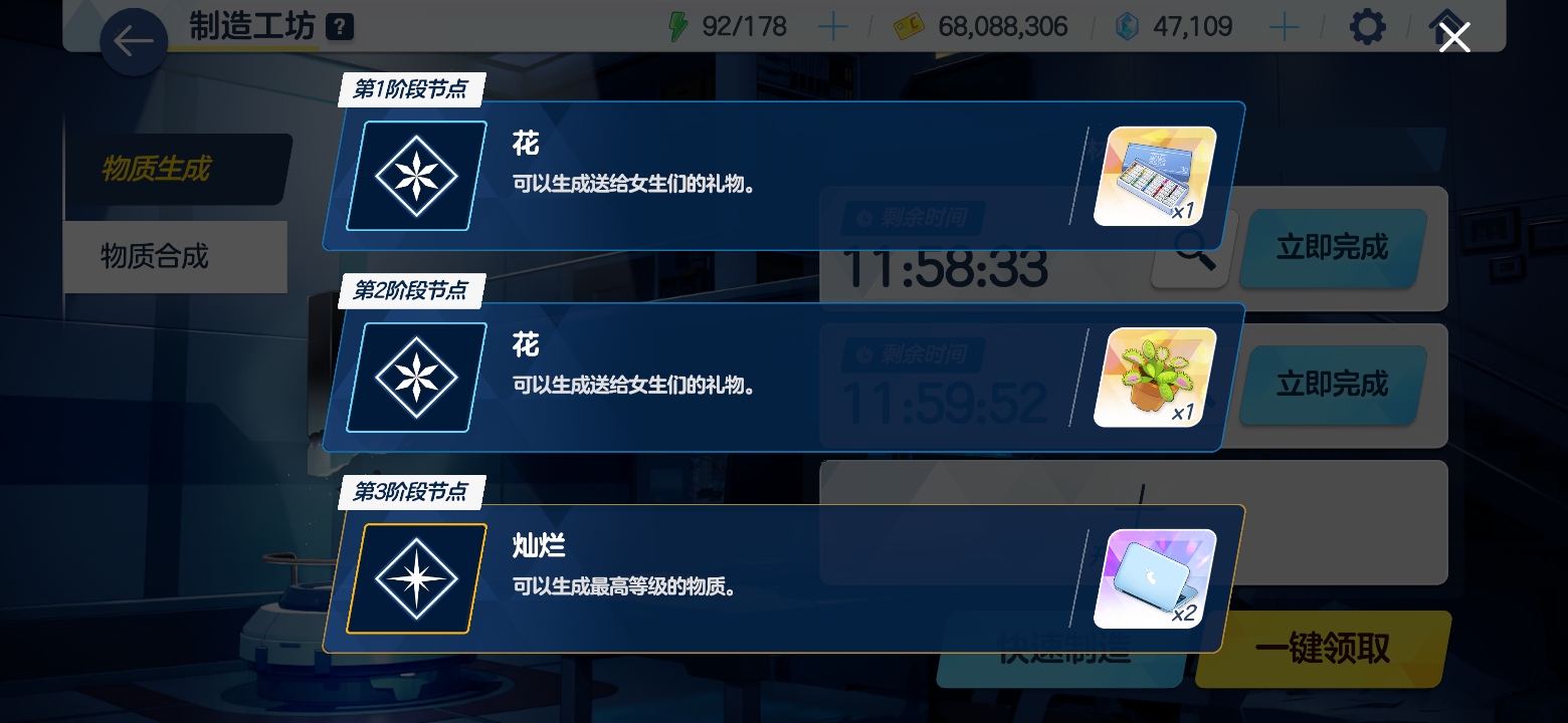 制造石:每日任务给2个每周任务给3个,一周一共17个,有时候邮件可能也会发,还是抽卡剩下的。一次解放12好感度是个估算,三次解放平均80好感度的话是我用连续160次三解测试出来取一个非常保守的数值,视频在BV11M411D7Ta,实际的话应该在85-90之间。制造可以说是好感度来源的大头,如果想要拿学生50好感金牌或者100好感粉牌的话十分建议进行三解,因为三解才会出的紫色礼物加的好感非常多,注意!国服现在还没出紫色礼物,所以在国服有三解想法的人请把制造石存着等紫色礼物时装!冲好感等级的可以看BV14u4y1h7cM,如果是升个20好感开爱用品卷卷总力平常的一次解放就够了,记住,三次解放与总力战一档不可兼得。