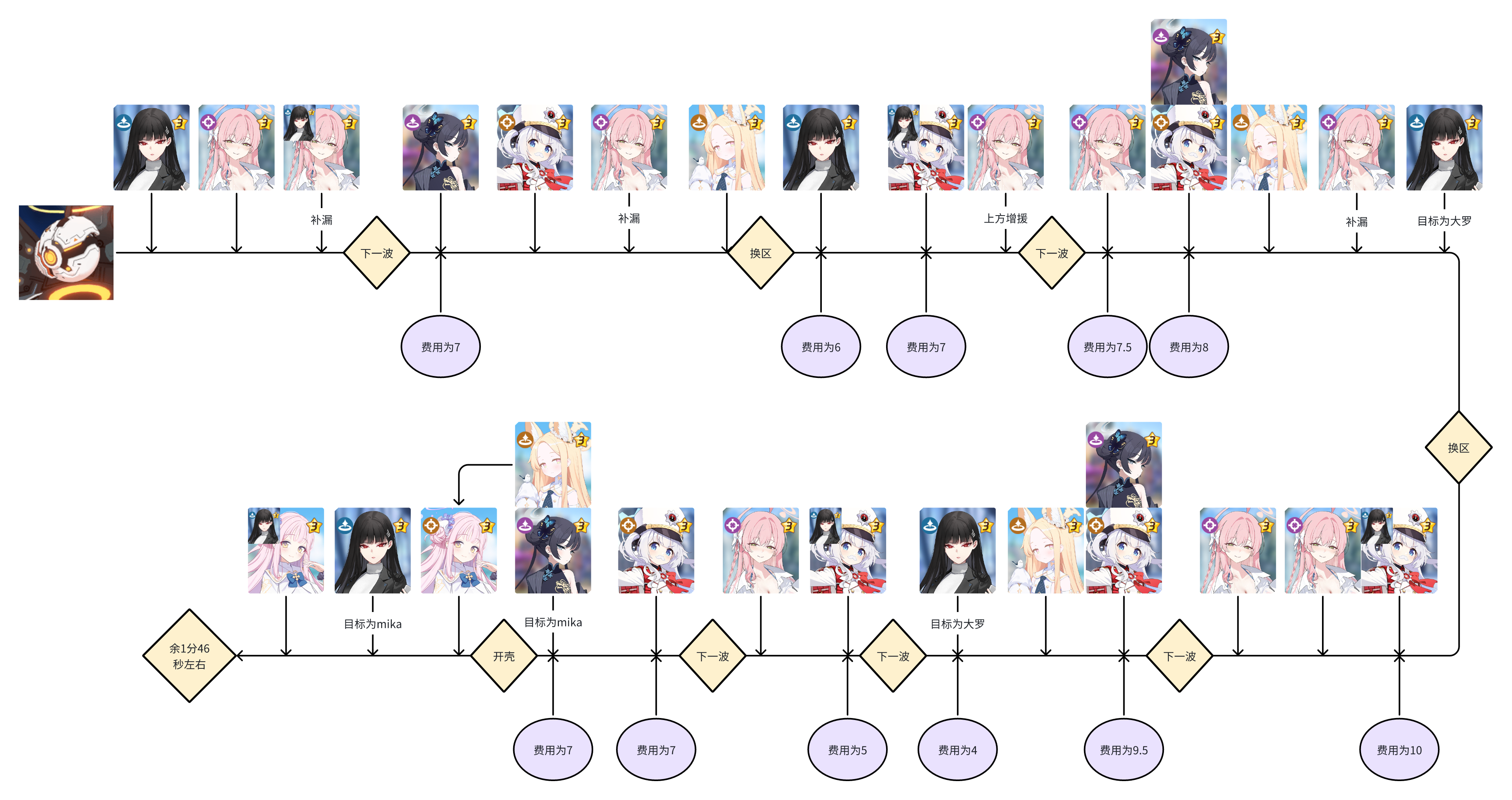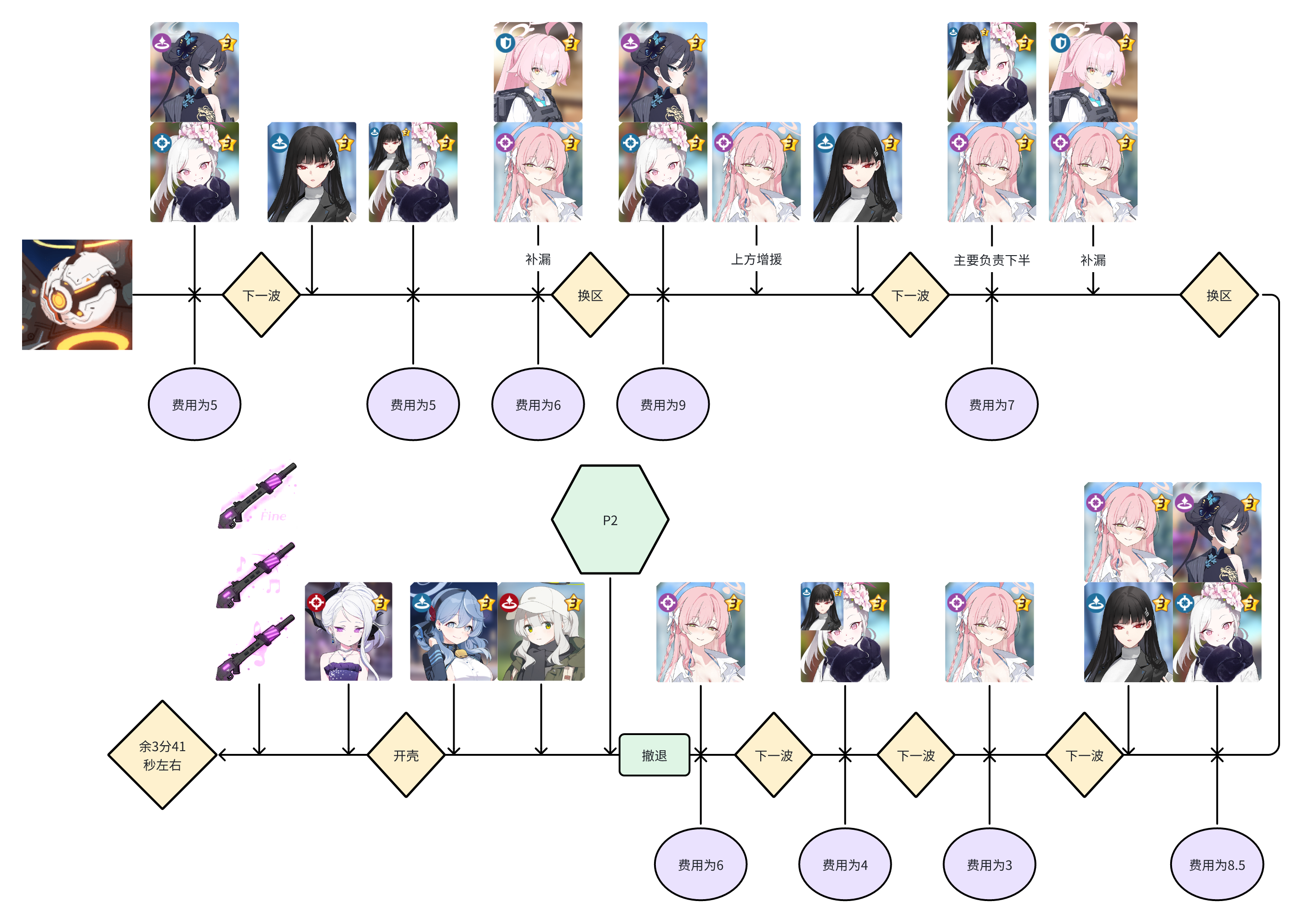 - P2阶段中,可自由替换任意清怪速度高的角色。