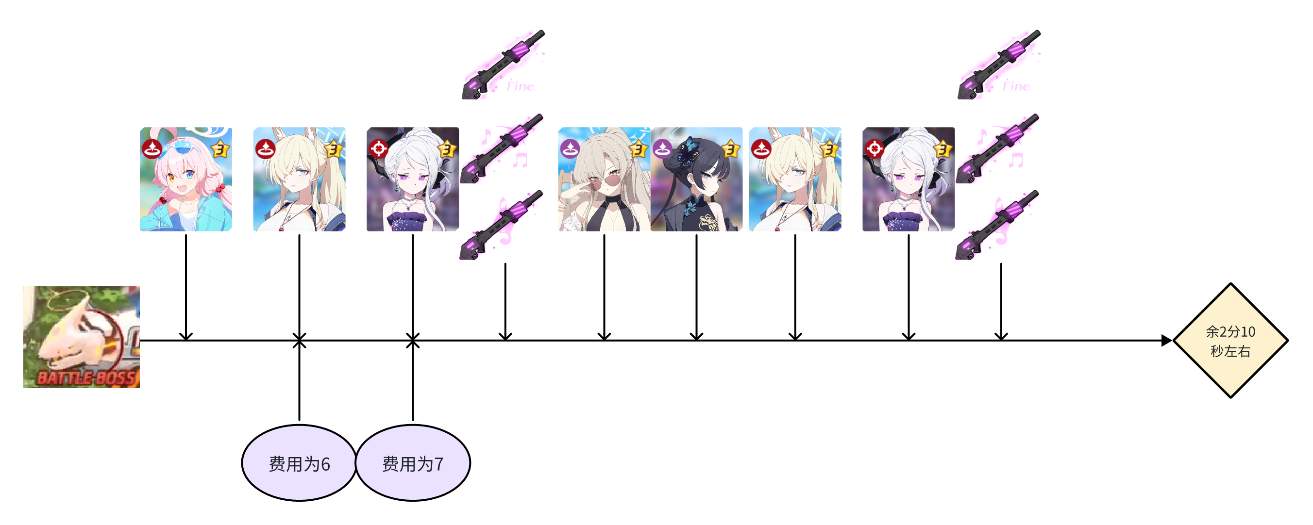 2. 箭头位置用以判断技能使用时机;箭头间间隔能大致反应技能使用时间段;堆叠情况为由下往上尽快释放技能