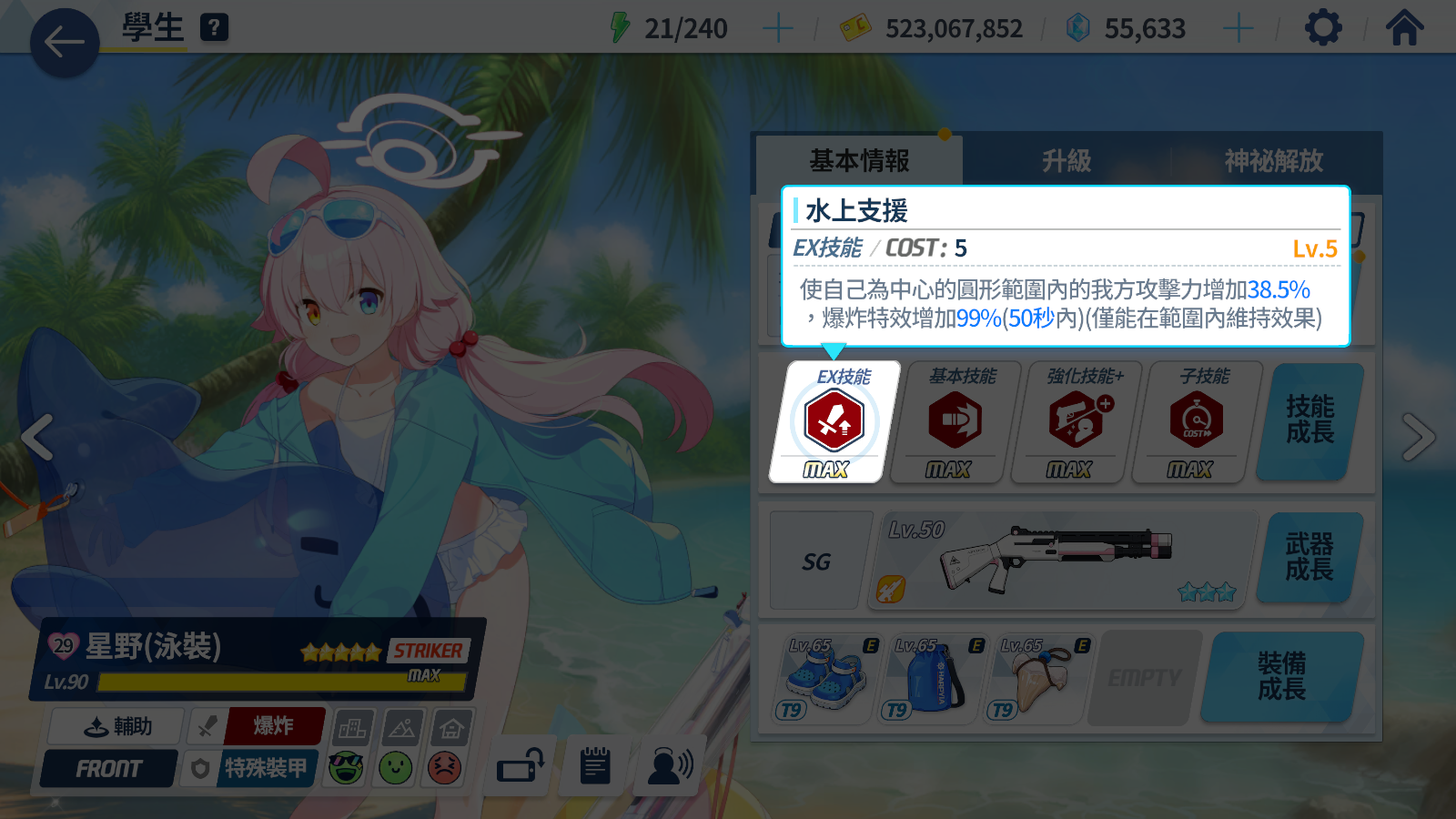 泳装咲、泳装康娜、制服明日奈、小玉、康娜的SS均会提升我方单位的攻击力。(不清楚技能?点我)