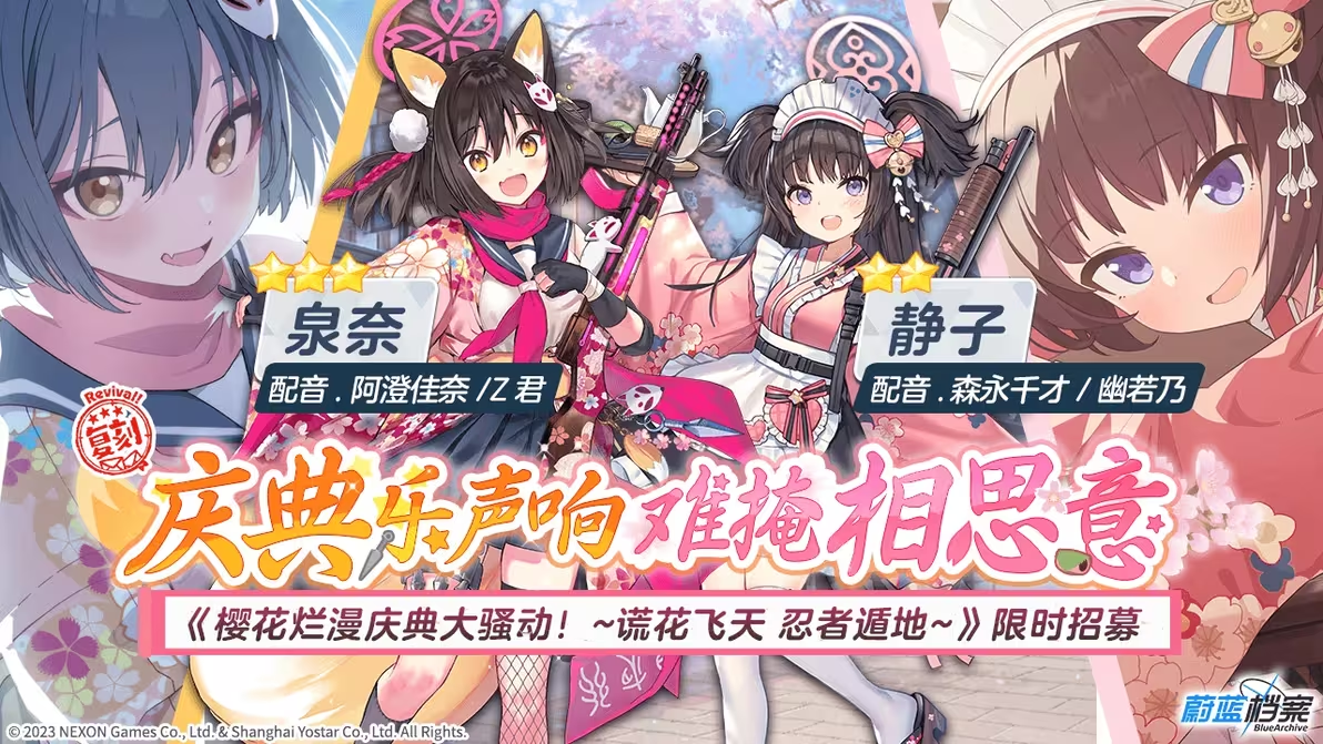 限时复刻招募【庆典乐声响 难掩相思意】即将开启!在本次招募中,3★成员“泉奈”、2★成员“静子”招募概率得到提升!