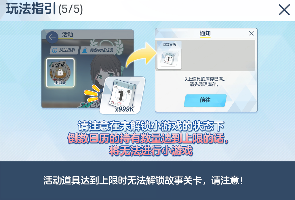 这次小游戏宗旨是让在LIVE开演前的7天时间里(小游戏内时间)安排甜点部训练日程的育成游戏
