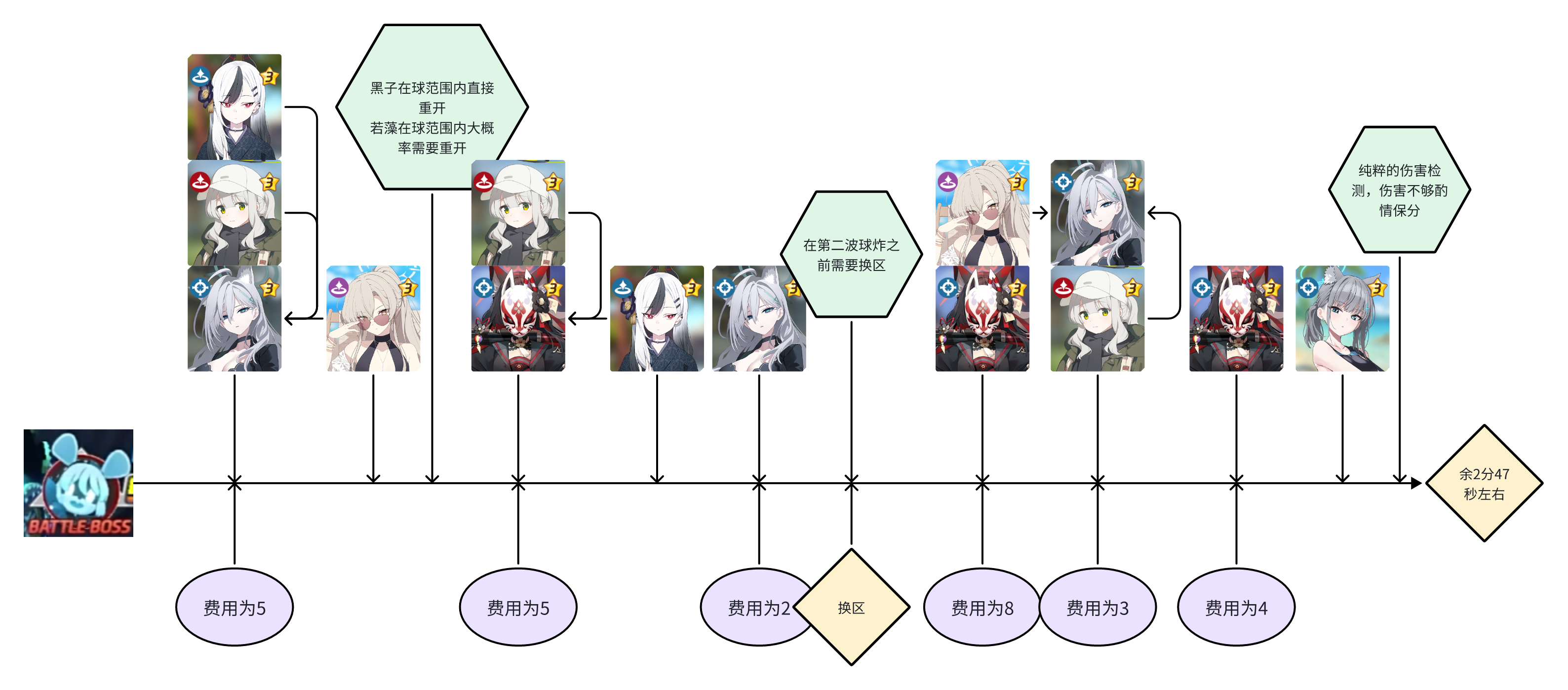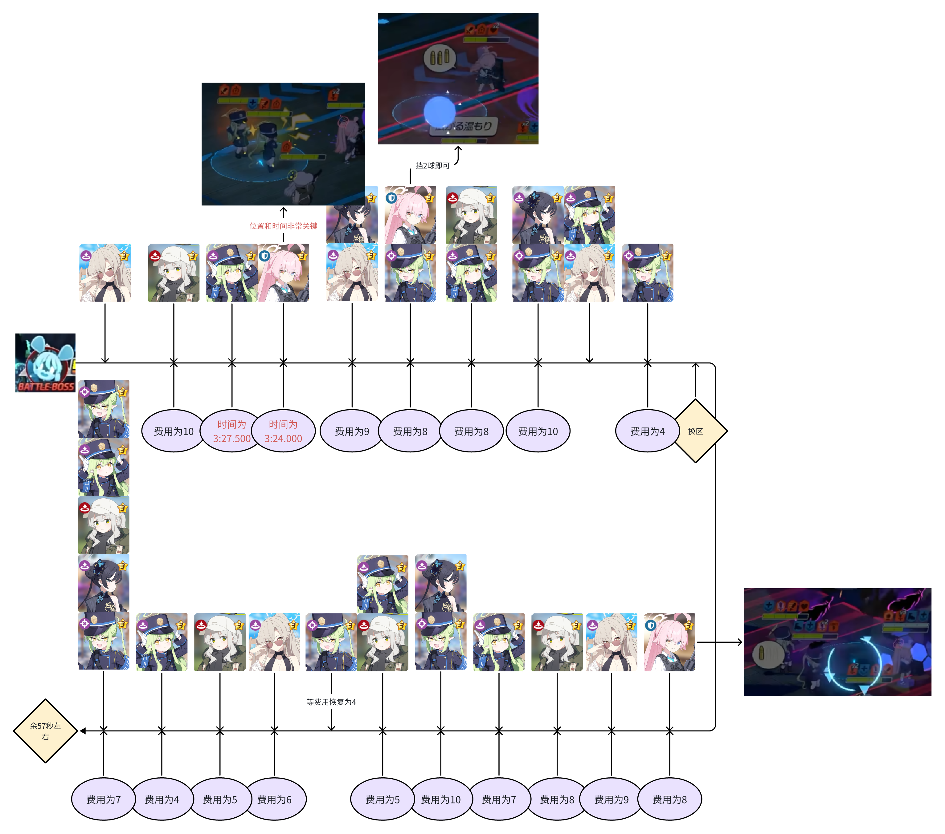 2. 箭头位置用以判断技能使用时机;箭头间间隔能大致反应技能使用时间段;堆叠情况为由下往上尽快释放技能