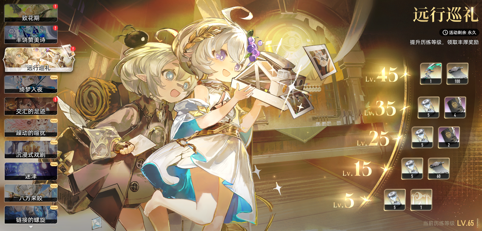 这个时期中最主要的的任务是主线任务推进、提高玩家等级、解锁养成上限,然后去体验和了解游戏的大致玩法,同时尽可能节约资源,为45级解锁的一系列功能铺路。