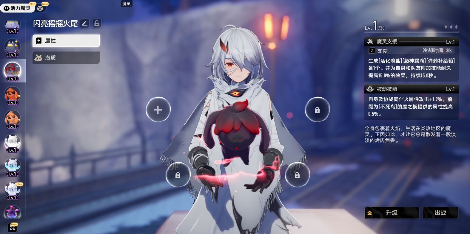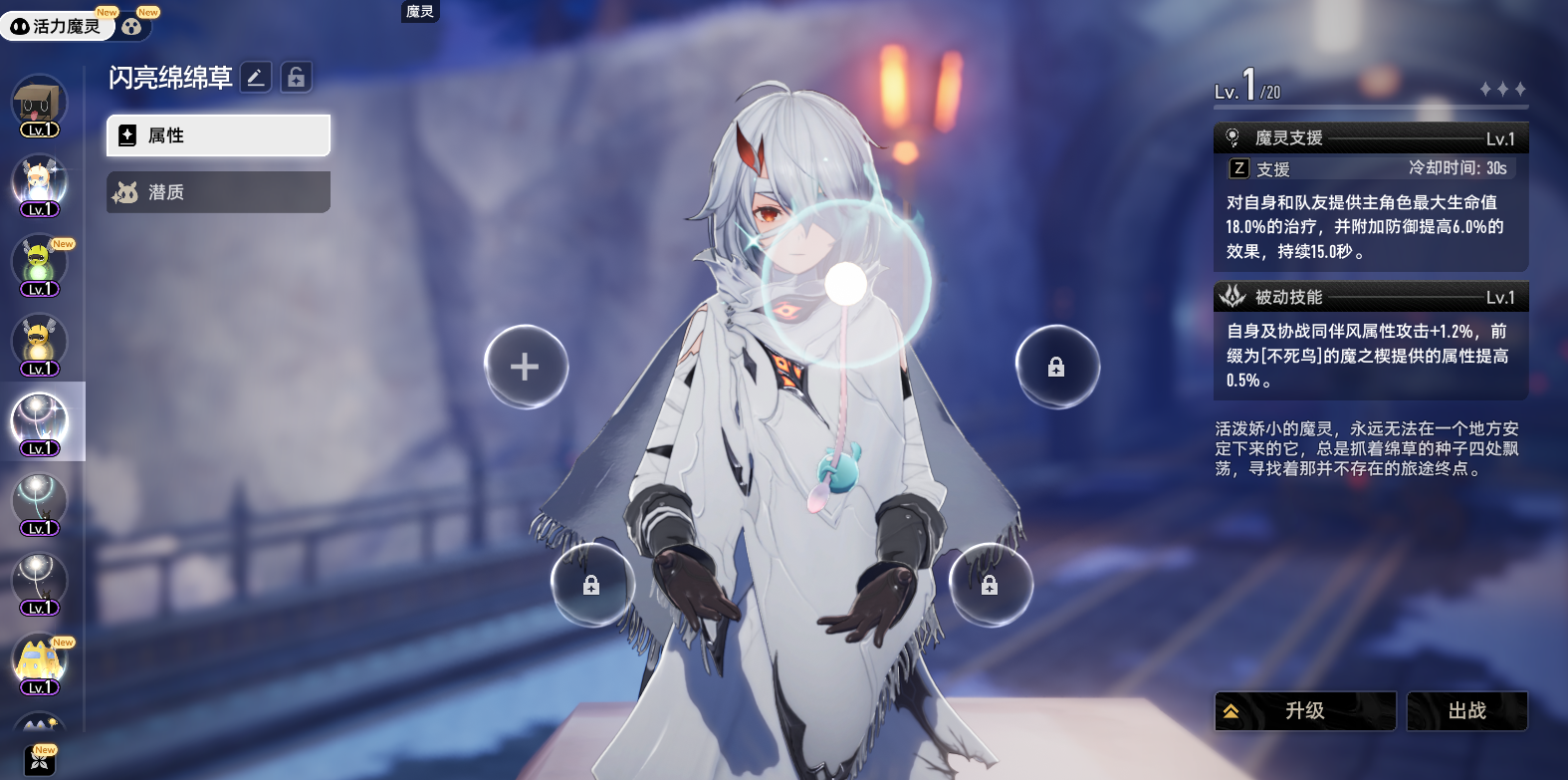 (带有闪亮前缀的魔灵初始会自带1个已解锁的特质槽位,并且左侧头像也会闪闪发光)