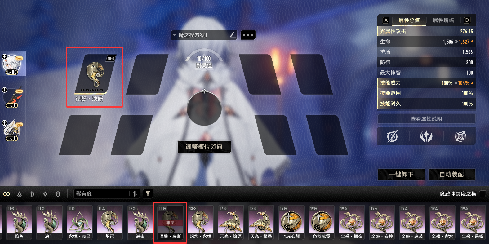 魔之楔属性:尽可能堆高攻击、技能耐久、技能威力即可。