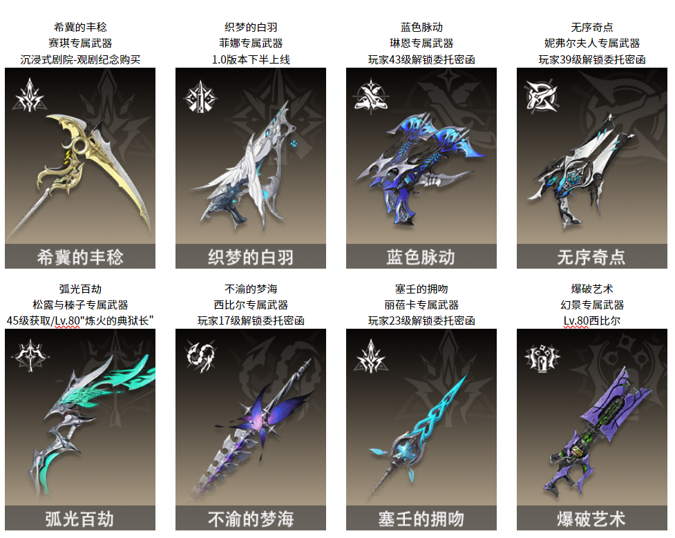 需要养成的武器主要有两个队伍主战输出角色的专属武器:【蓝色脉动】和【失乡的獠牙】