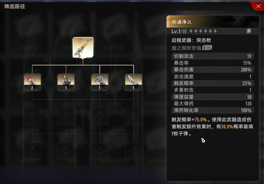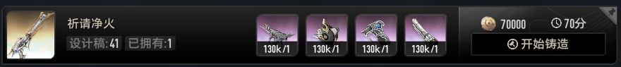 (其中新手引导会让我们制作一把祈请净火,这把只会消耗紫色材料,后续想要重复铸造均需要消耗金色素材)