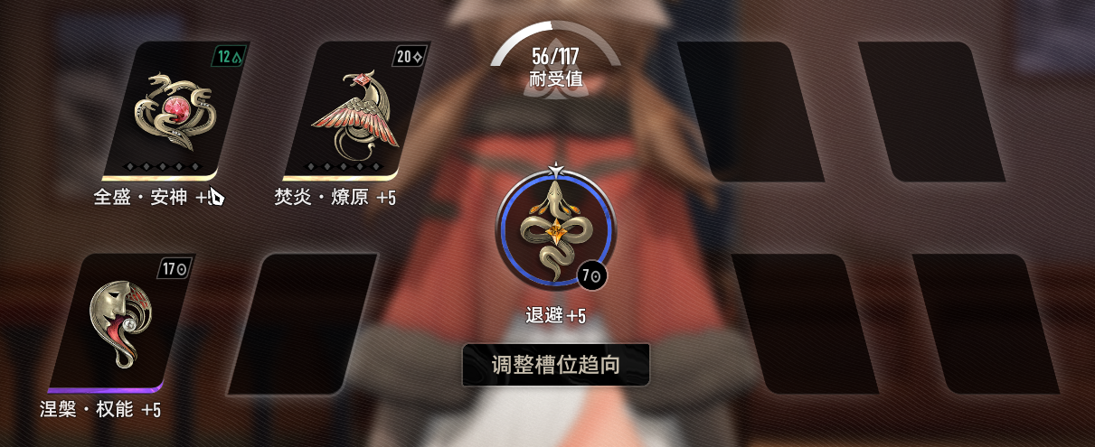 带个【百首】系列的魔之楔给队友回能或者加伤就够了,其他随便带,火属性比较可惜的是不像水和风属性那样有辅助可以携带的魔之楔。如果有多余的【涅槃·全能】可以带上堆一下技能范围。而武器魔之楔方面更是完全随意,没必要给她多余资源。