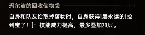 掉落物指的是击败杂兵身上随机掉的血瓶蓝瓶和弹药箱,可以叠加技能威力,可惜不对队友生效只对玛尔洁起效,遗憾。