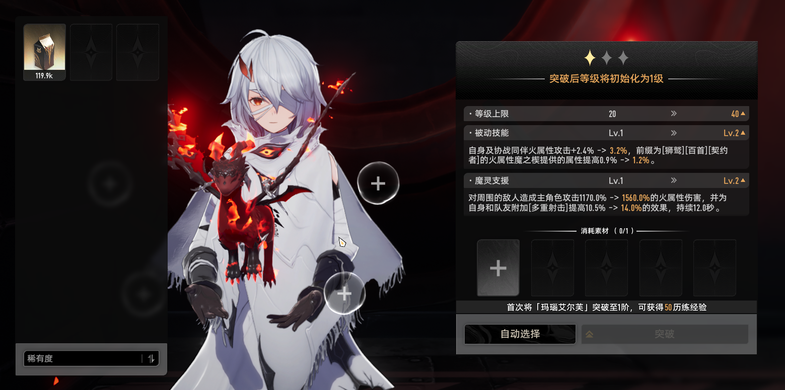 (如图所示,魔灵只有突破才会提升技能等级,并且突破后等级会回到1级)