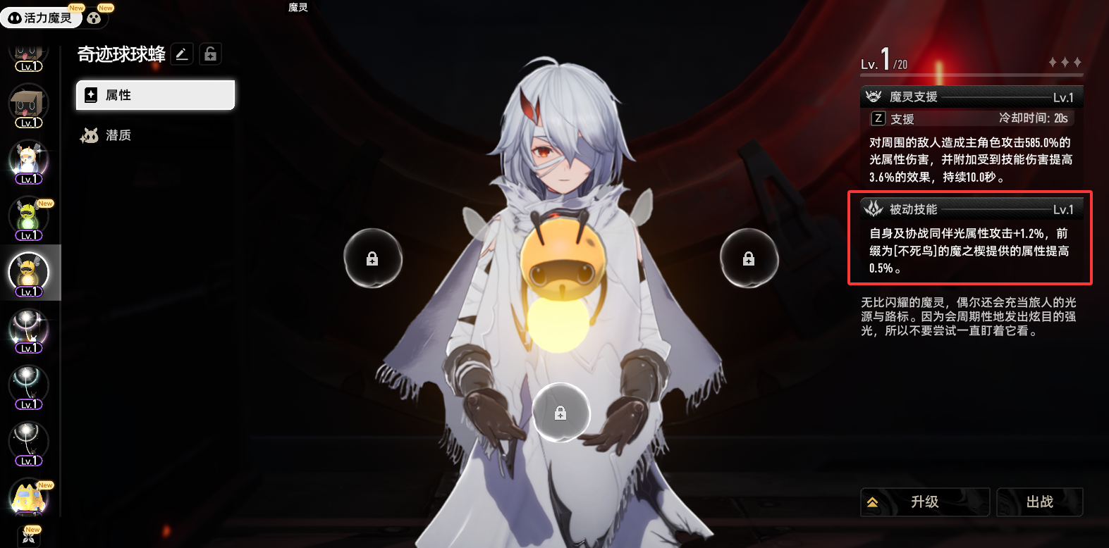突破效果:活力魔灵的支援和被动技能只能通过突破升级