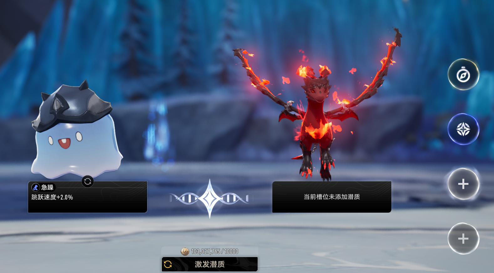 操作方法:点击活力魔灵的潜质页面后,在右侧选择要上副词条的位置,然后选择失活魔灵,消耗掉该失活魔灵即可把潜质转移给活力魔灵作为其被动生效。