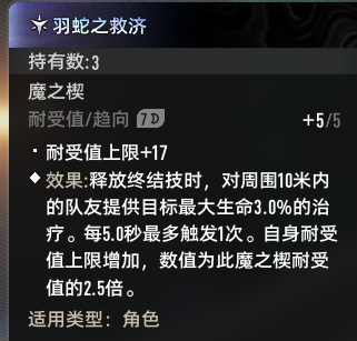 接下来是魔之契方面 兰迪的定位是防御护盾复制角色,所以一切与攻击加伤词条有关都不考虑 中枢方面理论都可以携带 在这里感觉救济还不错,当系统控制的工具人开大时可以提供群体回血效果 辅助性拉满。