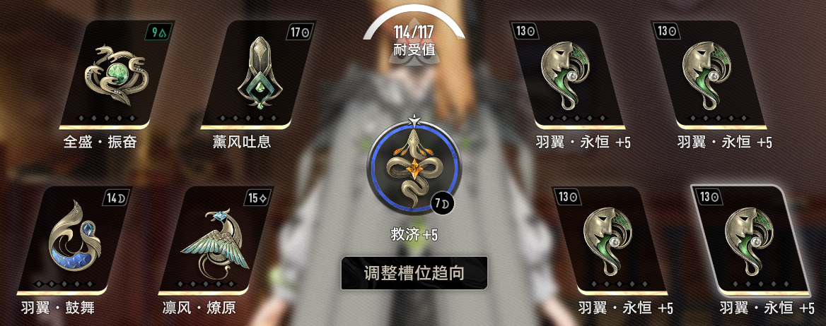 全盛:振奋,熏风吐息,羽翼·鼓舞,凛风·燎原剩下全带羽翼·永恒,中间圆形魔之契带救济