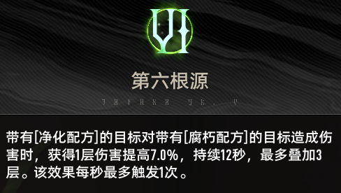 达芙涅的核心根源是第一根源和第六根源,第一根源无脑增伤,第六根源开大期间队友对有debuff的敌人伤害提高,总体可增伤37%。不过第一根源增伤太少,第六根源比较难获得,所以过主线期间免费获得一个达芙涅之后就可以不用管了,优先多获取几个不同属性的主c。后期再考虑补达芙涅的根源。另外几个根源是提升达芙涅自身的伤害,作为一个协战辅助来说不重要。