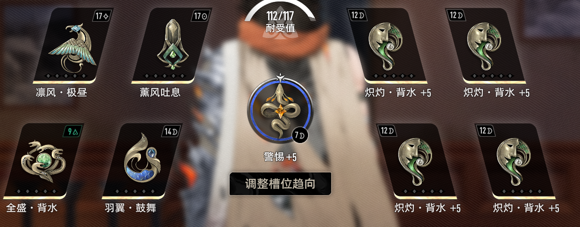 凛风·极昼,熏风吐息,全盛·背水,羽翼·鼓舞,剩下4个可选炽灼·背水,炽灼·决断(点了2根源就带决断)。中间的魔之契带退避,或者警惕