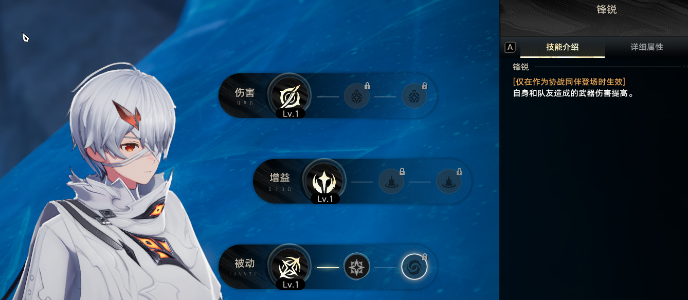 加点方面大招优先 但是伤害与被动也建议前期点上几级,贝蕾的输出手法也很简单了,开局使用远程武器上buff,开残光杀到怪物群中开启大招再接一次白嫖的残光接着一直使用同律武器进行输出,打到神智槽空后使用宠物技能 普攻与残光快速恢复神智再次开启大招,最简单好懂的一位角色。