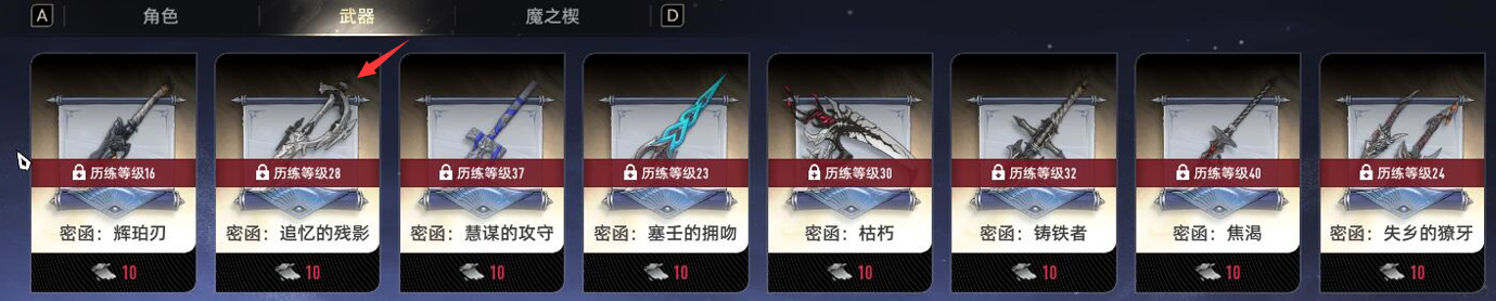 因为被动技能的存在,贝蕾强绑定单手剑武器,这把追忆的残影可以为贝蕾提供攻击范围+神智回复的效果,虽然贝蕾是一名武器伤害类型的角色,但大招开启后会造成大量的神智消耗,携带追忆可以让输出模式更加平稳。此外简单的加攻武器琥珀刀算是一个下位替代,还是更推荐追忆的残影。
