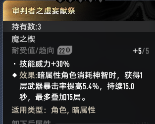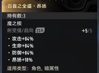 撑面板的昂扬与羽翼鼓舞,最需要用到的部分。接着是为贝蕾量身定做的属性攻魔之楔虚妄献祭,技能威力+暴击加成 贝蕾触发这个加功机制也很简单。剩下的槽位可以选择极昼 炽灼等 此外,蓝色的鼓舞+16%效益也可以用来填补最后没满的部分(只需要10倾向)