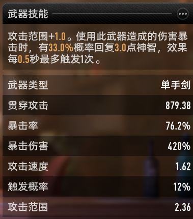 大部分情况下,「妮弗尔夫人」对于近战武器伤害的需求较低,所以大部分情况推荐使用【追忆的残影】,武器主要提升「妮弗尔夫人」的神智回复,可以缓解属性重心转移到输出方向之后,导致续航方向可能存在的问题,同时武器拥有着极大的攻击范围,实际战斗体验打击感也很强。