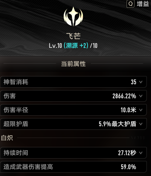 释放[飞芒]时,为自身和队友附加触发概率提高效果。